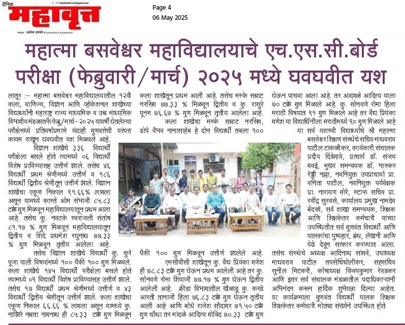 महात्मा बसवेश्वर महाविद्यालयात छत्रपती संभाजी महाराजांची जयंती उत्साहात साजरी